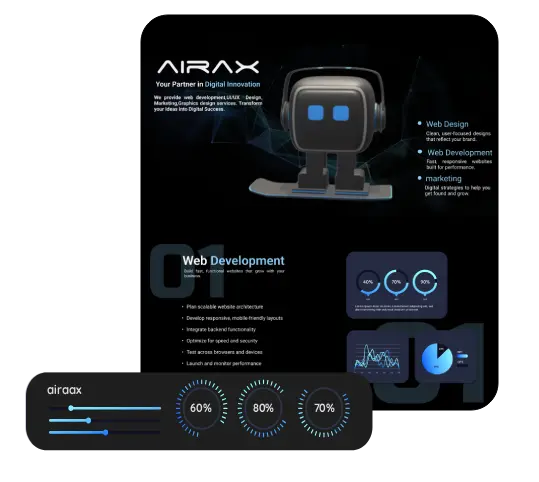 At Airax, we craft digital experiences that help businesses grow and stand out. Our team combines creativity, strategy, and technology to bring your ideas to life.
